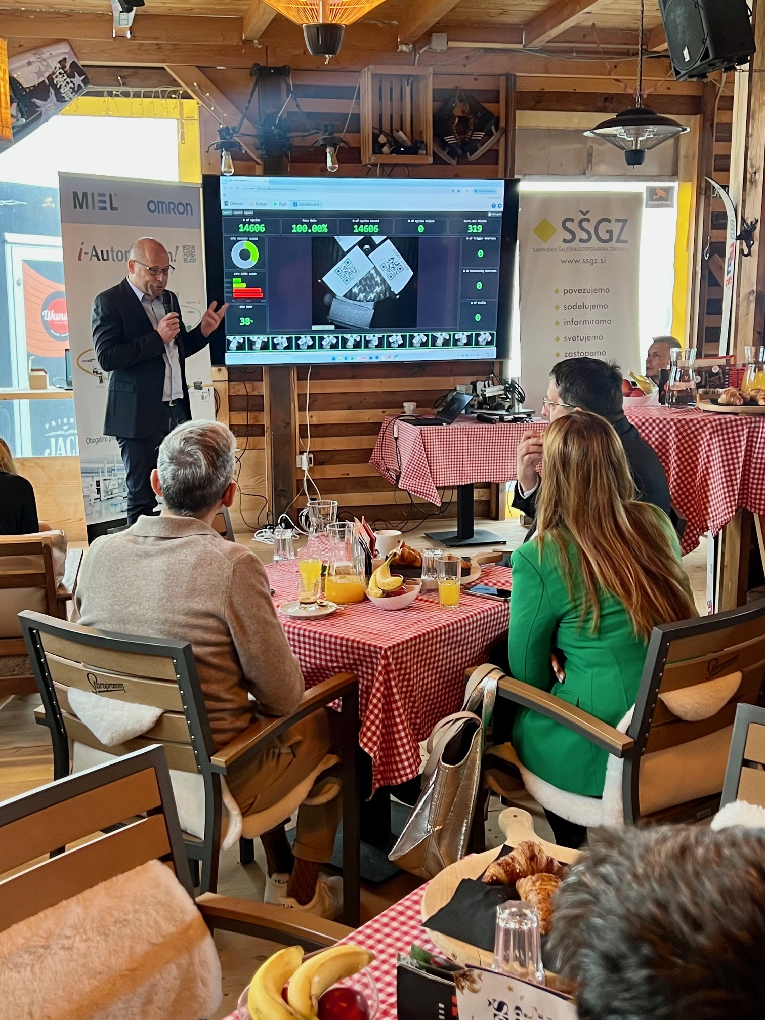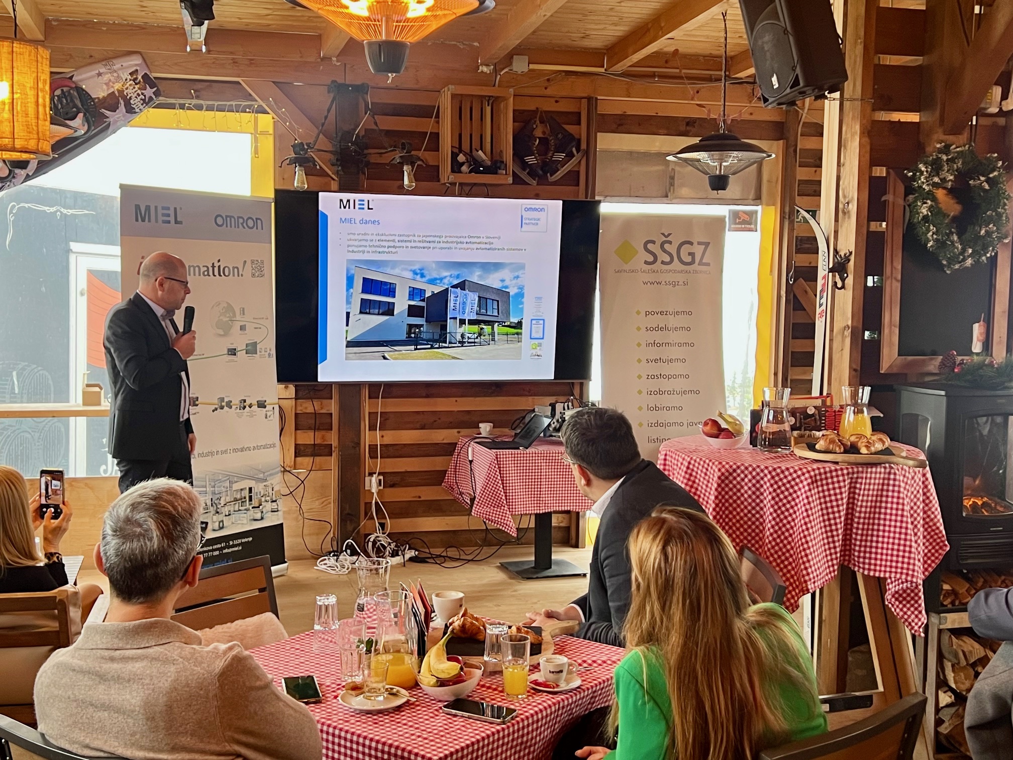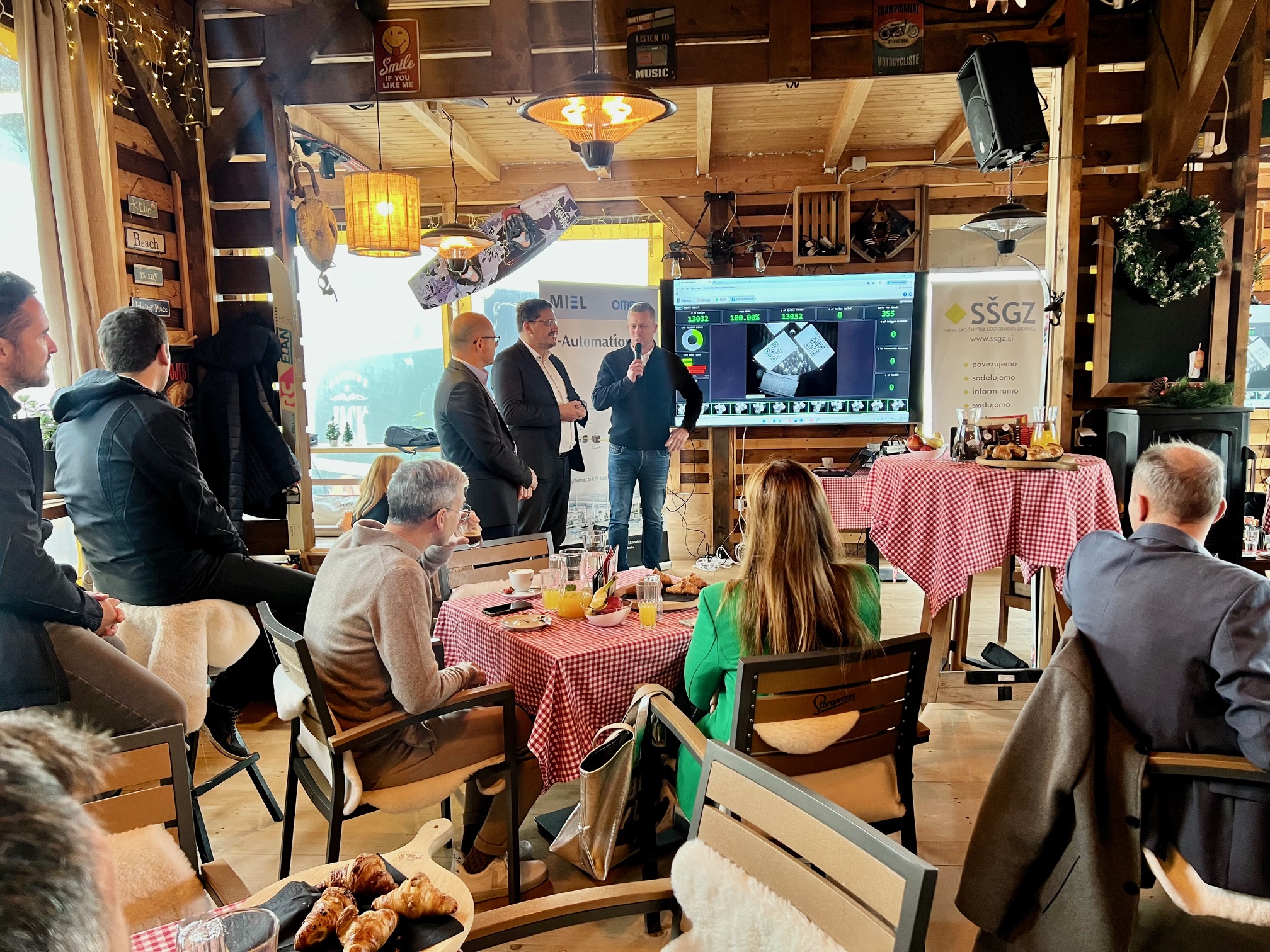 Direktor podjetja, mag. Andrej Rotovnik, je v uvodnem delu dogodka predstavil razvojne mejnike podjetja in njhov današnji obseg delovanja. Poudaril je, da MIEL danes ponuja celovite rešitve za industrijsko avtomatizacijo – od načrtovanja in razvoja sistemov do tehnične podpore in servisa. V središču njihovega delovanja so pametni stroji, pametne linije in pametne tovarne, ki temeljijo na integraciji umetne inteligence, industrijskega interneta stvari (IIoT) in robotskih sistemov.